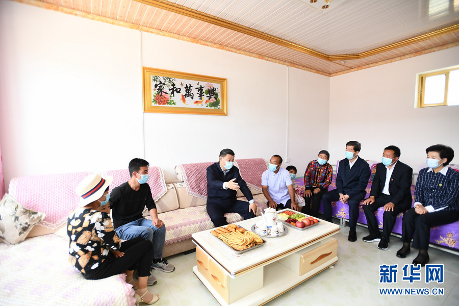 6月8日至10日,中共中央總書記、國(guó)家主席、中央軍委主席習(xí)近平在寧夏考察。這是6月8日下午,習(xí)近平在吳忠市紅寺堡區(qū)紅寺堡鎮(zhèn)弘德村看望移民搬遷群眾,向村民們揮手致意。 新華社記者 謝環(huán)馳 攝 新華社銀川6月10日電 中共中央總書記、國(guó)家主席、中央軍委主席習(xí)近平近日在寧夏考察時(shí)強(qiáng)調(diào),要全面落實(shí)黨中央決策部署,堅(jiān)持穩(wěn)中求進(jìn)工作總基調(diào),堅(jiān)持新發(fā)展理念,落實(shí)全國(guó)“兩會(huì)”工作部署,堅(jiān)決打好三大攻堅(jiān)戰(zhàn),扎實(shí)做好“六穩(wěn)”工作,全面落實(shí)“六保”任務(wù),努力克服新冠肺炎疫情帶來(lái)的不利影響,優(yōu)先穩(wěn)就業(yè)保民生,決勝全面建成小康社會(huì),決戰(zhàn)脫貧攻堅(jiān),繼續(xù)建設(shè)經(jīng)濟(jì)繁榮、民族團(tuán)結(jié)、環(huán)境優(yōu)美、人民富裕的美麗新寧夏。 夏日炎炎,塞上江南天高云淡,草木蔥蘢。6月8日至10日,習(xí)近平在寧夏回族自治區(qū)黨委書記陳潤(rùn)兒、自治區(qū)政府主席咸輝陪同下,先后來(lái)到吳忠、銀川等地,深入農(nóng)村、社區(qū)、防洪工程、農(nóng)業(yè)產(chǎn)業(yè)園區(qū)等,就統(tǒng)籌推進(jìn)常態(tài)化疫情防控和經(jīng)濟(jì)社會(huì)發(fā)展工作、鞏固脫貧攻堅(jiān)成果、加強(qiáng)生態(tài)環(huán)境保護(hù)、推動(dòng)民族團(tuán)結(jié)進(jìn)步進(jìn)行調(diào)研。 6月8日至10日,中共中央總書記、國(guó)家主席、中央軍委主席習(xí)近平在寧夏考察。這是6月8日下午,習(xí)近平在吳忠市紅寺堡區(qū)紅寺堡鎮(zhèn)弘德村扶貧車間,同正在加工制作紙箱的村民交流。 新華社記者 鞠鵬 攝 吳忠市紅寺堡區(qū)紅寺堡鎮(zhèn)弘德村是生態(tài)移民村,有建檔立卡貧困戶1036戶4497人,目前還有20戶50人未脫貧。8日下午,習(xí)近平首先來(lái)到弘德村考察脫貧攻堅(jiān)工作。在村扶貧車間院內(nèi),他聽取了寧夏以及弘德村脫貧攻堅(jiān)情況介紹。走進(jìn)扶貧車間,習(xí)近平同正在加工制作紙箱的村民們親切交流。鄉(xiāng)親們告訴總書記,村里引入企業(yè)從事紙箱包裝業(yè)務(wù),解決了一百多人就業(yè)問(wèn)題。習(xí)近平表示肯定。他指出,興辦扶貧車間目的是扶貧,要堅(jiān)持扶貧性質(zhì),向困難群眾傾斜,多招收困難群眾就業(yè)。鄉(xiāng)親們?cè)诩议T口就業(yè),雖然收入不比進(jìn)城務(wù)工高,但省去了住宿、伙食、交通等費(fèi)用,還能照顧家庭,一舉多得。企業(yè)參與興辦扶貧車間,體現(xiàn)了先富帶后富,很有意義。 6月8日至10日,中共中央總書記、國(guó)家主席、中央軍委主席習(xí)近平在寧夏考察。這是6月8日下午,習(xí)近平在吳忠市紅寺堡區(qū)紅寺堡鎮(zhèn)弘德村察看回族村民劉克瑞家院落。 新華社記者 謝環(huán)馳 攝 隨后,習(xí)近平步行察看村容村貌。在回族村民劉克瑞家,他仔細(xì)看院落、客廳、臥室、廚房、牛棚,詳細(xì)了解家庭就業(yè)、收入、看病、社保等情況。劉克瑞告訴總書記,家里的耕地流轉(zhuǎn)了,還養(yǎng)了3頭肉牛,兒子兒媳在附近紡織廠打工,2017年全家脫貧,生活越來(lái)越好,鄉(xiāng)親們打心底里感到黨的政策好,真切感受到共產(chǎn)黨親。習(xí)近平詢問(wèn)劉克瑞老兩口還有什么困難、對(duì)今后的日子有什么打算。習(xí)近平強(qiáng)調(diào),鄉(xiāng)親們搬遷后,更好生活還在后頭。希望鄉(xiāng)親們百尺竿頭、更進(jìn)一步,發(fā)揮自身積極性、主動(dòng)性、創(chuàng)造性,用自己的雙手創(chuàng)造更加美好的新生活。 6月8日至10日,中共中央總書記、國(guó)家主席、中央軍委主席習(xí)近平在寧夏考察。這是6月8日下午,習(xí)近平在吳忠市紅寺堡區(qū)紅寺堡鎮(zhèn)弘德村,同回族村民劉克瑞一家親切交流。 新華社記者 謝環(huán)馳 攝 離開村子時(shí),村民們紛紛趕到村口,歡送總書記。習(xí)近平向大家揮手致意,祝愿鄉(xiāng)親們生活幸福。 6月8日至10日,中共中央總書記、國(guó)家主席、中央軍委主席習(xí)近平在寧夏考察。這是6月8日下午,習(xí)近平在黃河吳忠濱河大道古城灣砌護(hù)段,察看黃河生態(tài)治理保護(hù)狀況。 新華社記者 鞠鵬 攝 習(xí)近平高度重視黃河流域生態(tài)保護(hù)和高質(zhì)量發(fā)展。他來(lái)到黃河吳忠濱河大道古城灣砌護(hù)段,沿岸邊步道,察看黃河生態(tài)治理保護(hù)狀況,聽取黃河寧夏段生態(tài)保護(hù)治理和水利工程建設(shè)情況匯報(bào)。習(xí)近平指出,黃河是中華民族的母親河,是中華民族和中華文明賴以生存發(fā)展的寶貴資源。自古以來(lái),黃河水滋養(yǎng)著寧夏這片美麗富饒的土地,今天仍在造福寧夏各族人民。寧夏要有大局觀念和責(zé)任擔(dān)當(dāng),更加珍惜黃河,精心呵護(hù)黃河,堅(jiān)持綜合治理、系統(tǒng)治理、源頭治理,明確黃河保護(hù)紅線底線,統(tǒng)籌推進(jìn)堤防建設(shè)、河道整治、灘區(qū)治理、生態(tài)修復(fù)等重大工程,守好改善生態(tài)環(huán)境生命線。 6月8日至10日,中共中央總書記、國(guó)家主席、中央軍委主席習(xí)近平在寧夏考察。這是6月8日下午,習(xí)近平在吳忠市利通區(qū)金花園社區(qū)黨群活動(dòng)服務(wù)中心,同社區(qū)志愿者代表親切